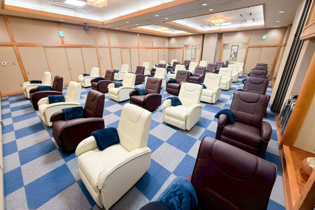 男性用のお部屋は36脚リクライニングチェアがございます。